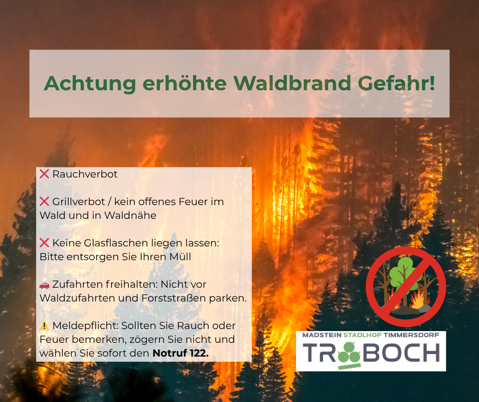 📢 WICHTIGE INFORMATION: Erhöhte Waldbrandgefahr🌲🔥
